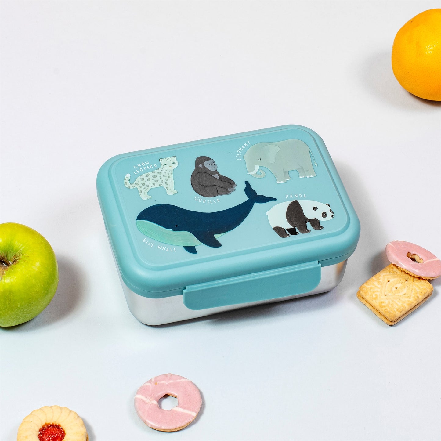 Grow children's knowledge of the planet we live on with this Endangered Animals Lunch Box. Inside, you'll find two divided sections inside perfect for storing a bento-style snack. Made from metal, this beautiful lunch accessory features a range of illustrated creatures in icy blues and pops of primary shades. Looks good and promotes good too!