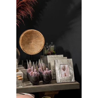 Display your cherished photographs with understated elegance using the Kensington Townhouse Photo Frame. The meticulously hammered aluminium surface creates a distinctive textured finish that captures and reflects light beautifully, adding subtle dimension to any interior scheme. Designed to accommodate 5 x 7 inch images behind recessed glass, the frame offers practical protection whilst maintaining visual clarity. Its cool silver tone complements both warm metallics and neutral furnishings, making it equally at home on a mantelpiece, console, or bedroom shelf. The angled rear support ensures stable, comfortable viewing without requiring wall mounting. This frame's sophisticated craftsmanship makes it an excellent choice for marking significant occasions or refreshing your existing displays with refined style.