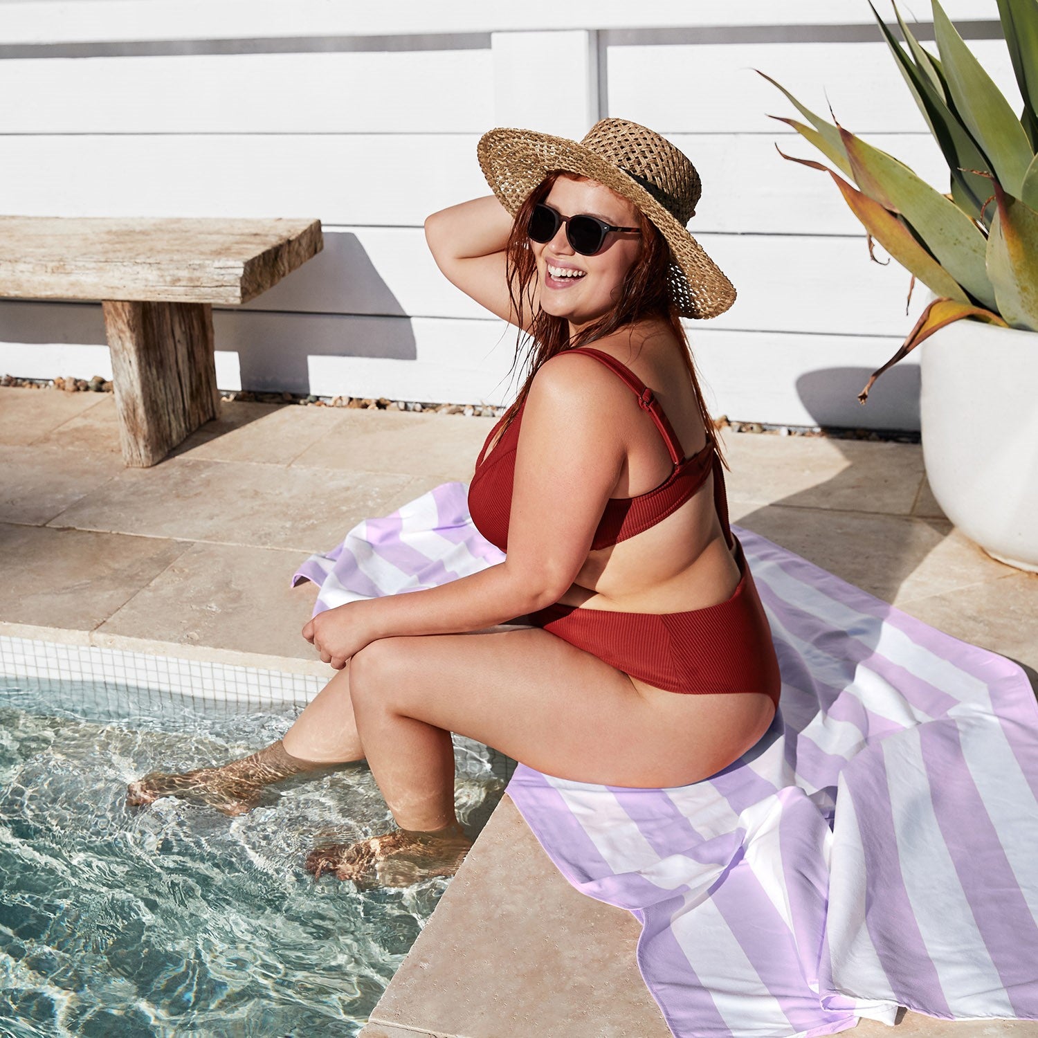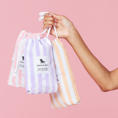 The Lombok Lilac Beach Towel by Dock and Bay is a luxurious and stylish accessory that elevates your beach and poolside experiences. Crafted with high-quality microfiber fabric, this beach towel boasts exceptional absorbency, quickly wicking away moisture for a dry and comfortable feel after a swim or sunbathing session. The sand-resistant feature ensures a clean and hassle-free beach outing, while the generously sized towel provides ample space for you to stretch out and unwind. Beyond its aesthetics and functionality, the Lombok Lilac Beach Towel is also committed to sustainability. The microfiber material is durable and machine-washable, reducing the need for frequent replacements and contributing to eco-friendly living. So, whether you're lounging by the ocean, enjoying a picnic at the park, or heading out for a vacation, the Lombok Lilac Beach Towel by Dock and Bay is the epitome of luxury and practicality, making it an essential and chic addition to your beach gear collection.