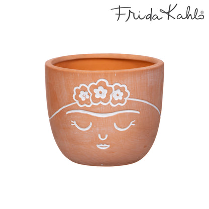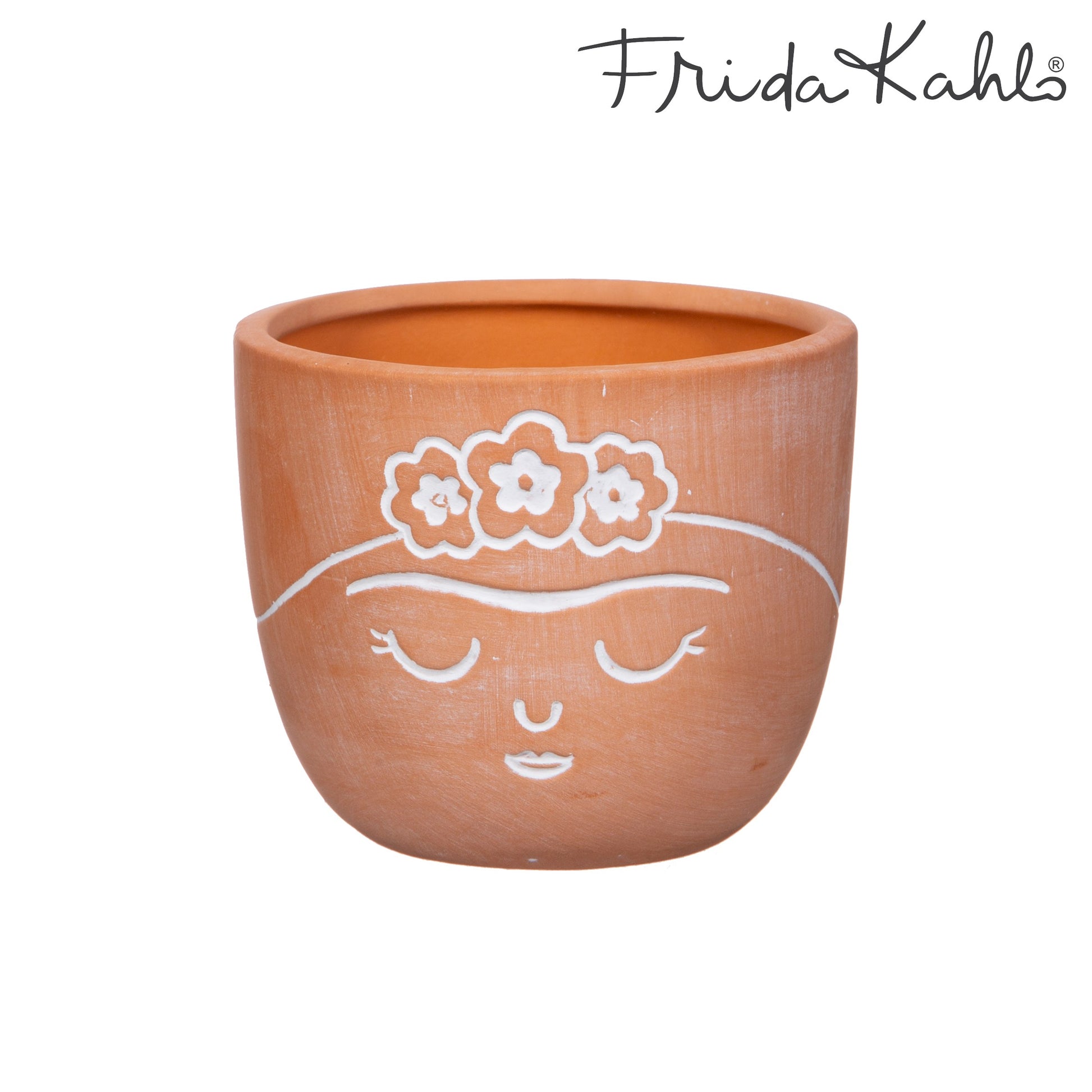 The legendary Frida Kahlo in muted terracotta. Perfect for adding a pinch of sass in mini planter form to any living space. Inspired by Frida Kahlo's vibrant and artistic style, the planter features a beautifully hand-painted design that captures her likeness with exquisite detail. Frida's iconic floral headpiece and expressive features adorn the planter, making it a unique and eye-catching home decor piece. Perfect for small succulents, cacti, or other tiny plants, this mini planter is an ideal addition to your windowsill, desk, or any nook in need of a touch of greenery. It adds a sense of cultural appreciation and creativity to your surroundings, reminding you of Frida Kahlo's enduring legacy as an artist and symbol of strength.