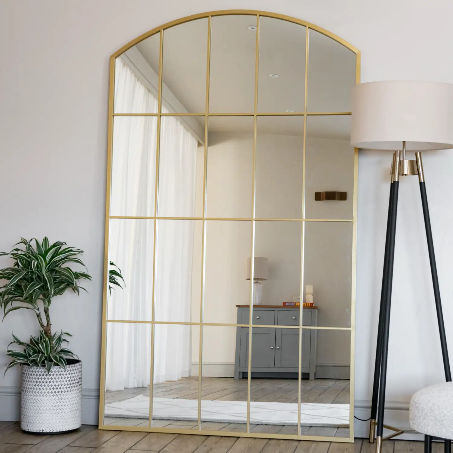 The Tomi mirror is a fantastic addition to any home decor with a distinctive and timeless curved arched window pane design that creates a phenomenal impact by infusing light and a sense of expansiveness into any space. The chic, modern frame integrates seamlessly into any decor, and the hand-welded, nearly invisible joints further enhance its luxurious, high-end finish while echoing the refined style of a lattice window mirror.