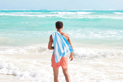 You can't beat a classic stripe! The sand simply shakes off at the beach, hang it up and it will be dry in no time, no soggy towels to take home at the end of the day. The lightweight material makes it perfectly portable for home and abroad. It's easy to care for too - the Tulum Blue Beach Towel requires minimal maintenance with its fast-drying, low-lint material. Enjoy maximum comfort and convenience on your next beach trip.